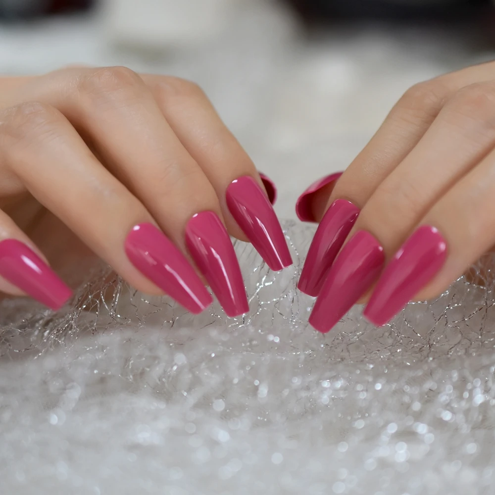 Отзывы о Глянцевые накладные ногти темно-розового цвета в гробе 24 шт. акриловые салонные с
