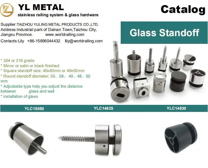 YL металла Поручни из нержавеющей стали и Стекло оборудования YL METAL является профессиональным производителем перил из нержавеющей стали и балюстрадные системы более 10 лет, у нас есть полный спектр продуктов перил и балюстрадные фитинги, такие как стеклянные шпильки, стеклянные зажимы, кронштейны для перил, соединители труб, верхние рельсовые трубы, кабельные перила. Наши продукты широко используются в безрамных стеклянных перил, лестничных перил, перил балкона, перил крыльца и так далее, все наши продукты для продажи проходят высокий стандарт промышленного контроля качества, они надежны и долговечны. Если вы все еще сомневаетесь И учитывая, какие перила и балюстрады выбрать поставщика, я думаю, что мы лучший выбор для вас.