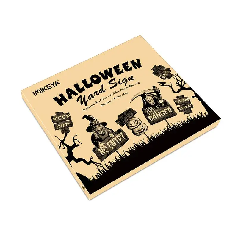 -6 знаков на Хэллоуин с 12 пластиковыми кольями, ade из прочного и армированного гофрированного пластика, водонепроницаемого, коррозионного и удерживаемого очень хорошо не сломанного легко под дождем или снегом.