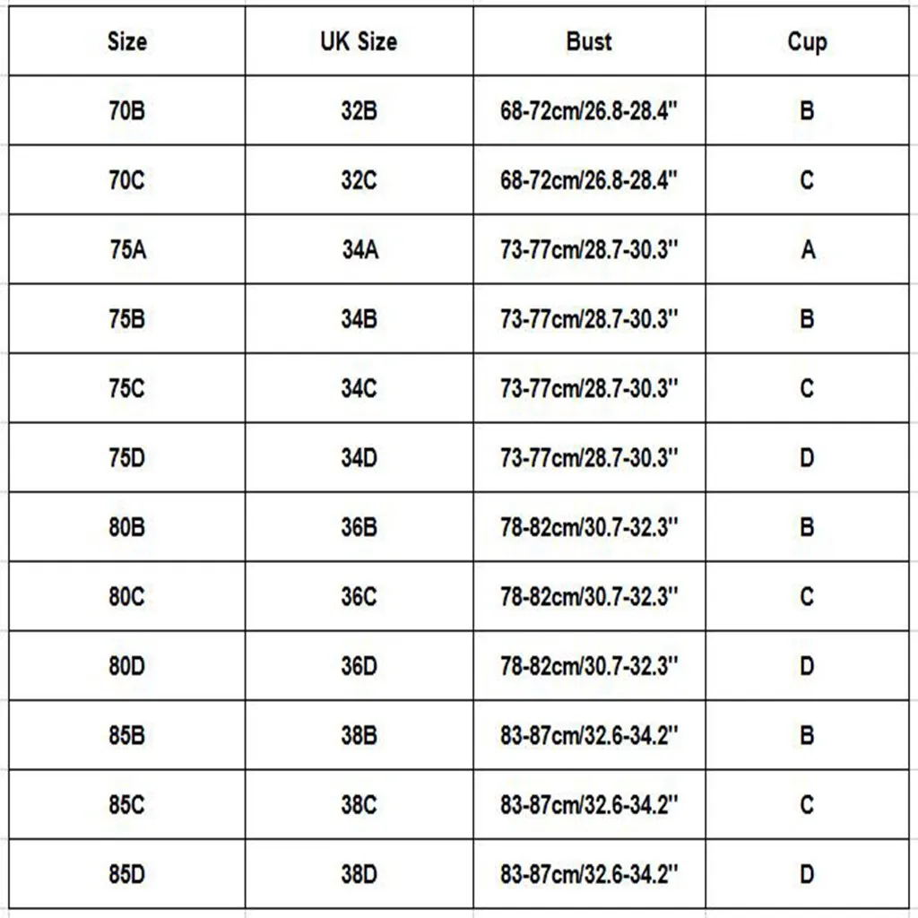| Размер | Размер Великобритании | Бюст | Чашка |