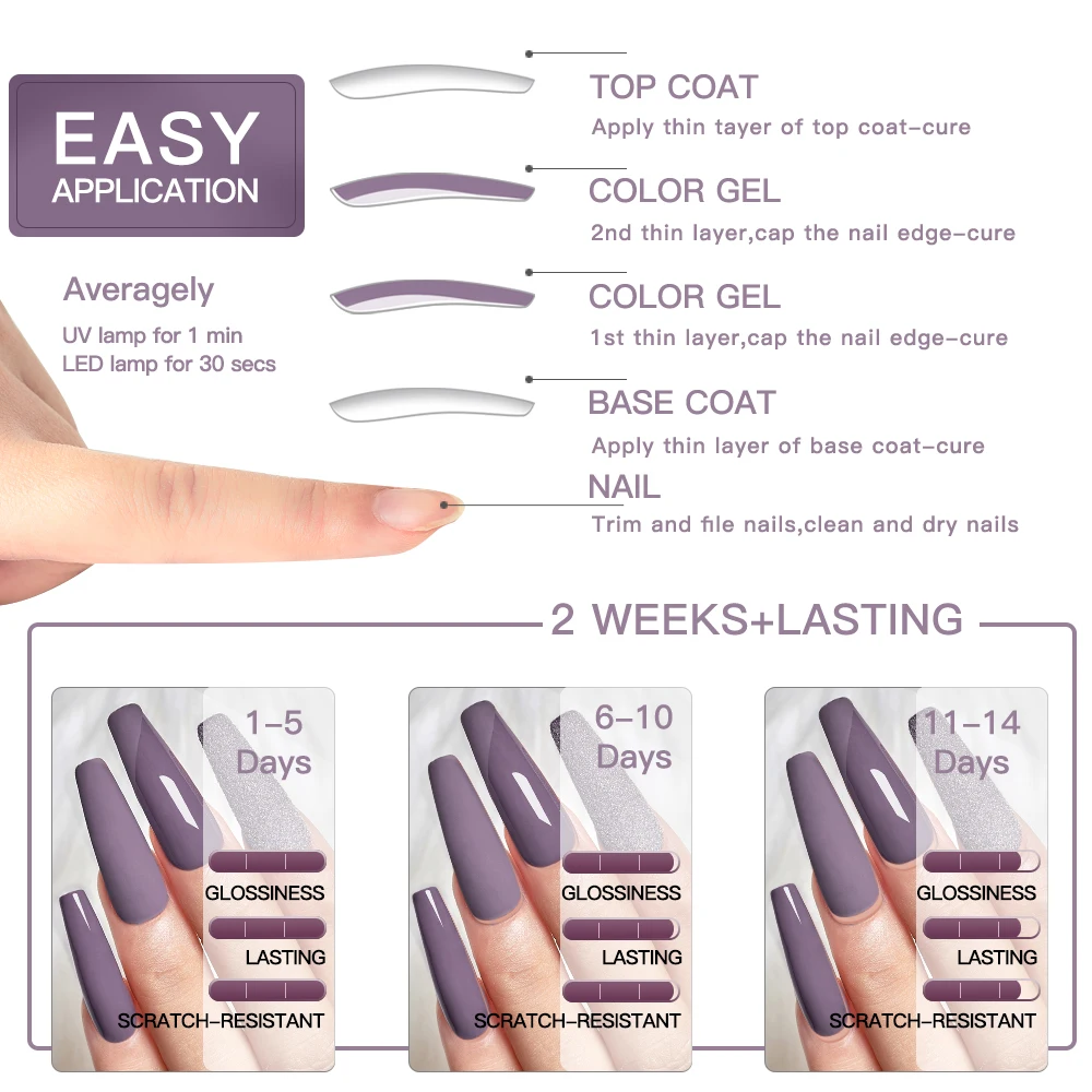 Шаг 5. Нанесите второй слой цветного геля, а затем немедленно вылечите УФ-лампой в течение 2 минут или вылечите светодиодной лампой в течение 60 секунд.