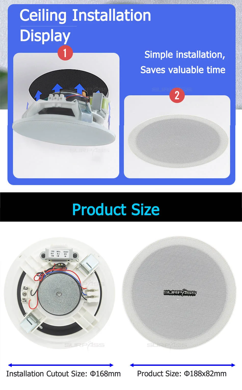 ● Размер отверстия установки: Φ168мм
