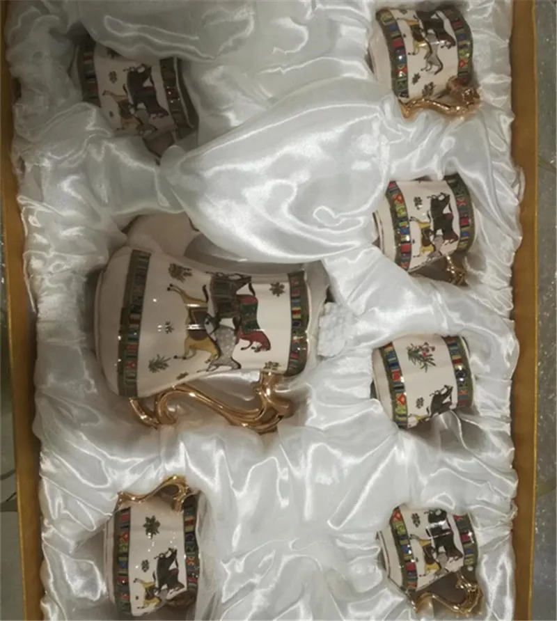 Кофейник и чашка набор керамический чайник и кружки с поддоном кухня 8 штук набор продукта золотая ручка свадебный подарок британский стиль