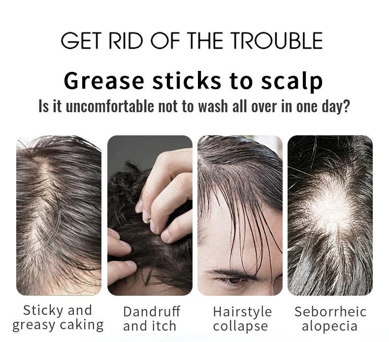 Липкий и жирный слепокПерхоть и зудСкладывающаяся прическаСеборейная алопецияКонтроль масла и восстановление воды