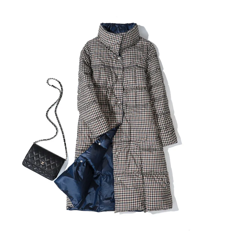 Отзывы о Luzuzi 2022 женский двухсторонний длинный пуховик зимняя водолазка в клетку белый