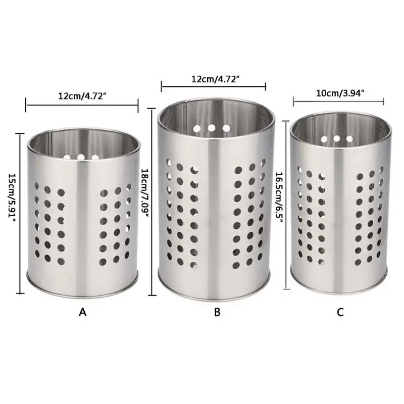 Вы беспокоитесь о том, как разместить кухонные инструменты? Палочки для еды, инструмент для нарезки, яичный венчик, ложки, вилки, инструменты для приготовления пищи, кисти и т. д. теперь эта практичная посуда crock поможет вам решить эти проблемы. Изготовлен из высококачественной нержавеющей стали, антикоррозийный, износостойкий и прочный. С отверстиями на дне и части тела, он может сливать воду и держать вещи сухими. Многоразовое использование для хранения палочек для еды, вилок, инструментов для приготовления пищи, кистей для вашей кухни или ванной комнаты.