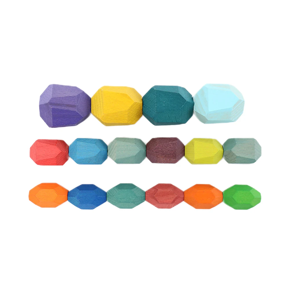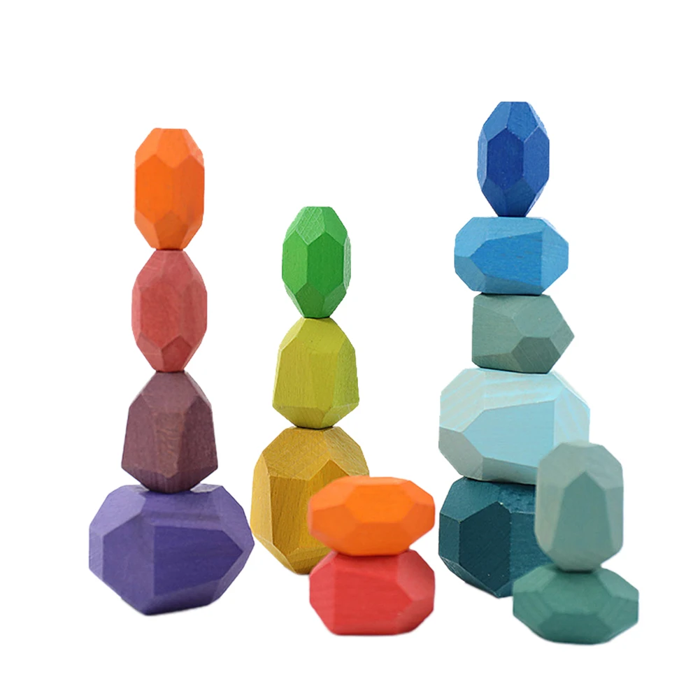 Wooden Building Blocks Set Handmade Wooden Stone Balance Blocks Natural Wood Toys Coloured Wooden Stones Stacking Game Rock Block Game Learning Toy for Children