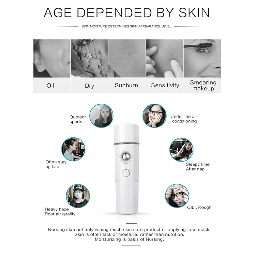 Характеристика: Можно добавить дезинфицирующий спиртовой элемент для очистки салона автомобиля и стола. Супер увлажнение показывает красоту Просто увлажнение и экономия денег два раза в день эквивалентны 4 маскам. Ультразвуковая вибрация 20 мл большой резервуар для воды Описание: 6 мл/частота распыления уровня Частота распыления составляет менее 20 мкм (100 мкм проникновения лица) 45S ректус пол Спецификация: Название продукта: нано-пополняющий воду Емкость резервуара для воды: 20 мл Время зарядки: 2 часа. Мощность зарядки: USB Материал: АБС-пластик Вес нетто/вес брутто: 45 г/71