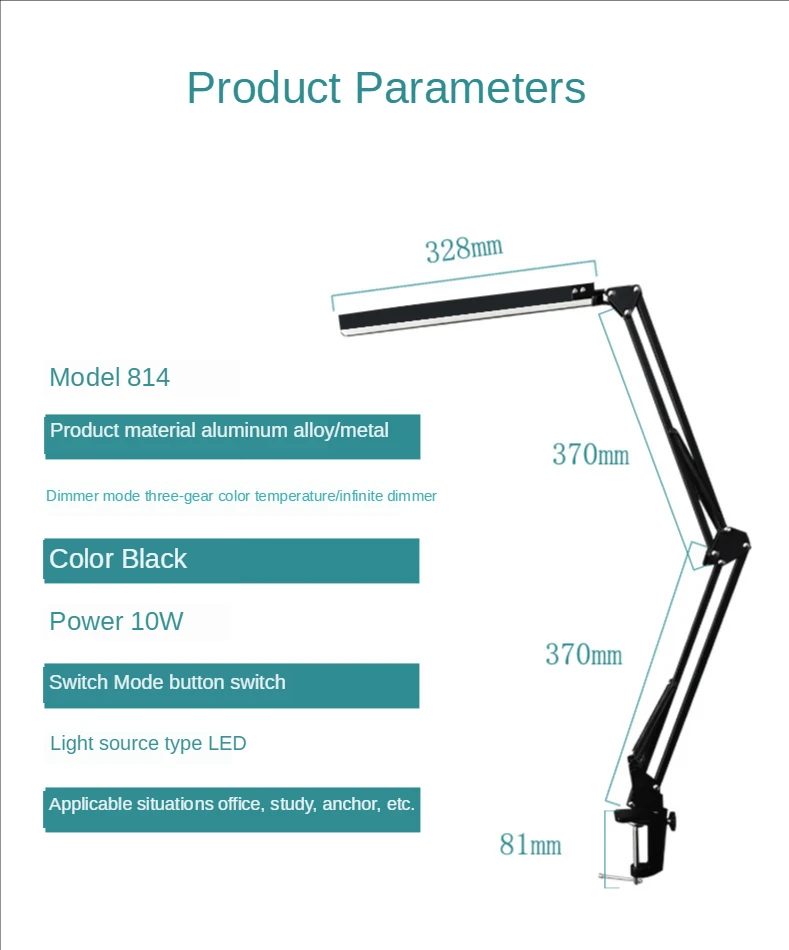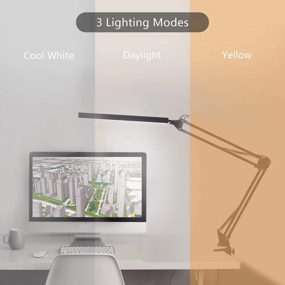 10 Вт Светодиодная настольная лампа для защиты глаз с зажимом, настольная лампа с плавной регулируемой яркостью, Гибкая Настольная лампа с питанием от USB