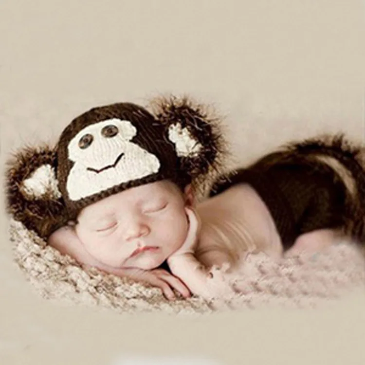 Коричневая Очаровательная Пушистая Шапка с длинным хвостом обезьяны со смайликом для новорожденных, празднование дня рождения 100, сувенир, фото, аксессуары для одежды