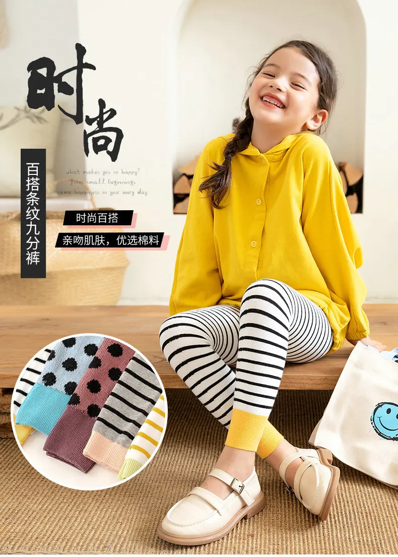 Осень 2020, леггинсы для девочек, леггинсы в полоску для детей-подростков, детские штаны, Колготки в горошек, обтягивающие детские штаны, От 1 до 12 лет