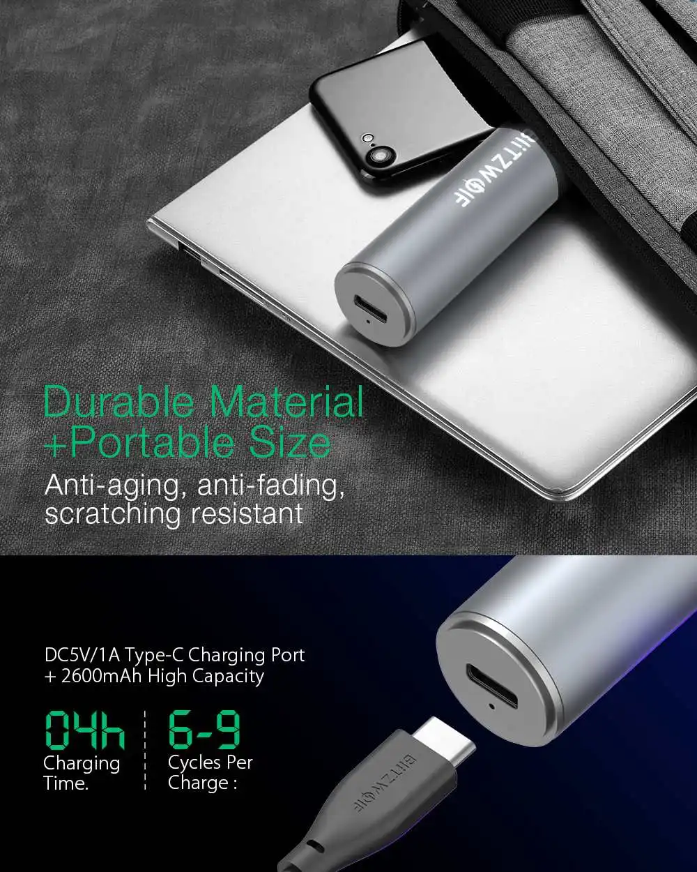 【 Большая емкость 2600 мАч 6-9 циклов зарядки и с портативным размером.