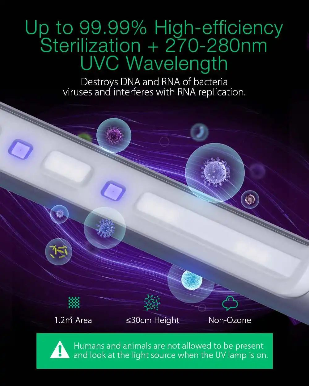 【 Высокоэффективная стерилизация 】до 99.99% Высокоэффективная стерилизация + длина волны 270-280nm UVC, разрушает DNA и RNA бактерий/вирусов и препятствует репликации RNA. Эффективно убивает бактерии и заботится о вашем здоровье.