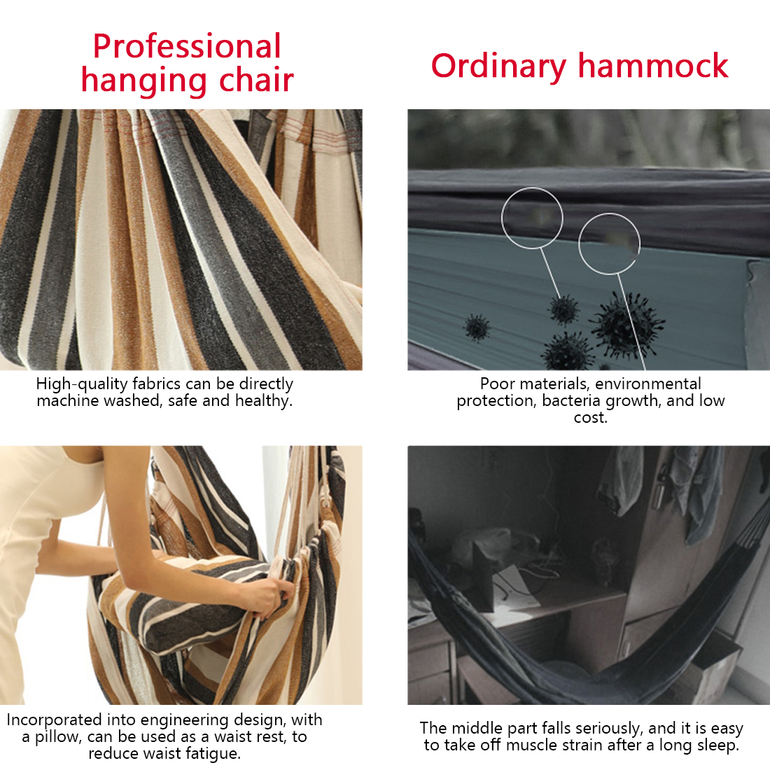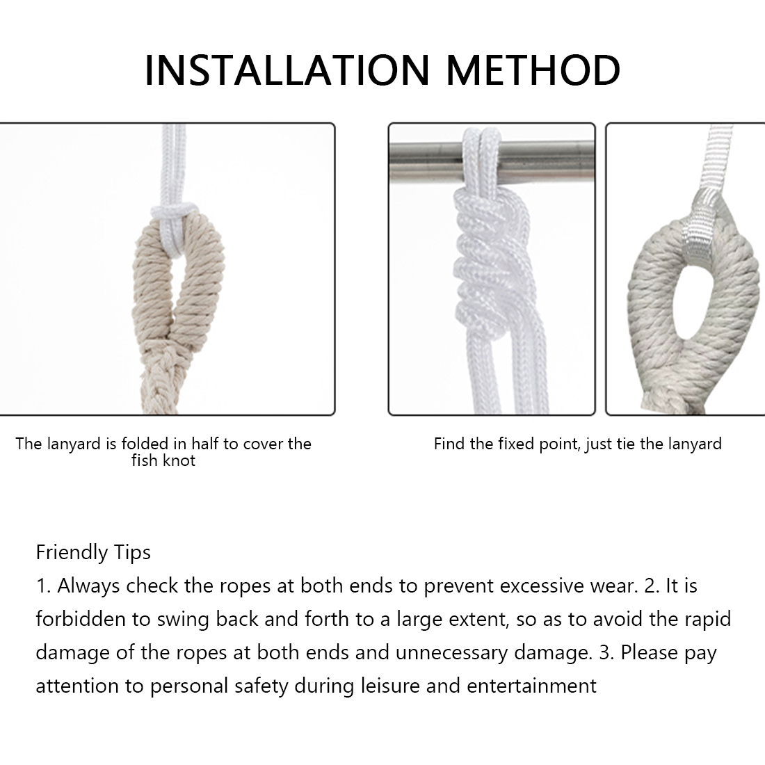 Пожалуйста, проверьте веревку гамака перед использованием. Чем короче расстояние веревки, тем лучше.