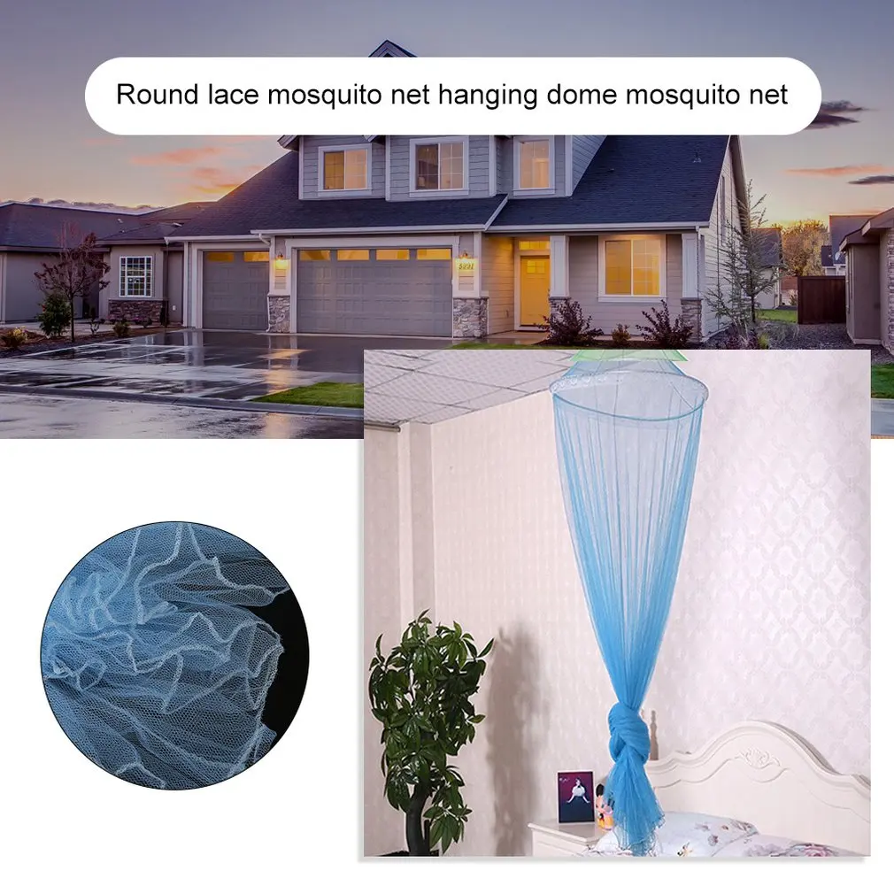 Летняя круглая кружевная сеточная занавеска для кровати с насекомыми, Полиэстеровая сетчатая ткань для домашнего использования, элегантная подвесная купольная противомоскитная сетка 8 цветов
