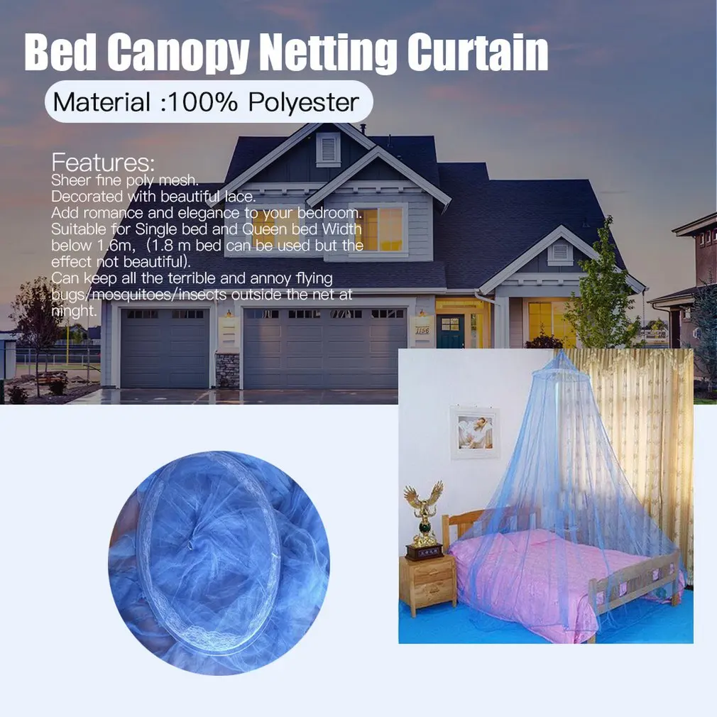 Особенности:1. Прозрачная Тонкая поли сетка, украшенная красивым кружевом, добавит романтичности и элегантности вашей спальне.