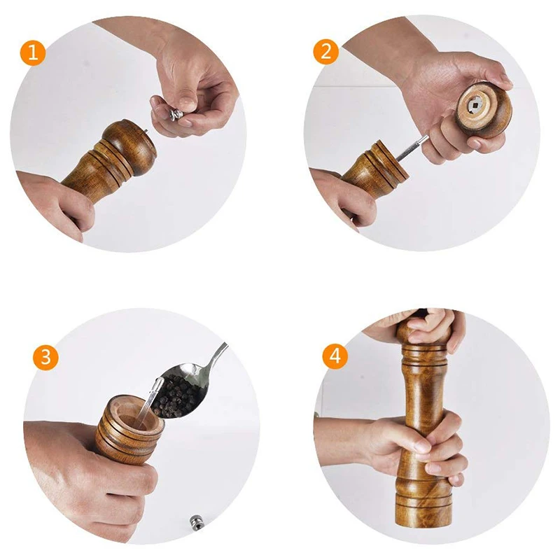 Характеристики продукта: 1. Дубовую крышку можно легко открутить для легкой заправки без беспорядка. 2. Дубовый корпус (пищевой) обеспечивает приятное ощущение прикосновения, не имеет массы для хорошего захвата. 3. Керамический ротор позволяет добиться окончательного измельчения, измельчения и Измельчения специй без ржавчины.