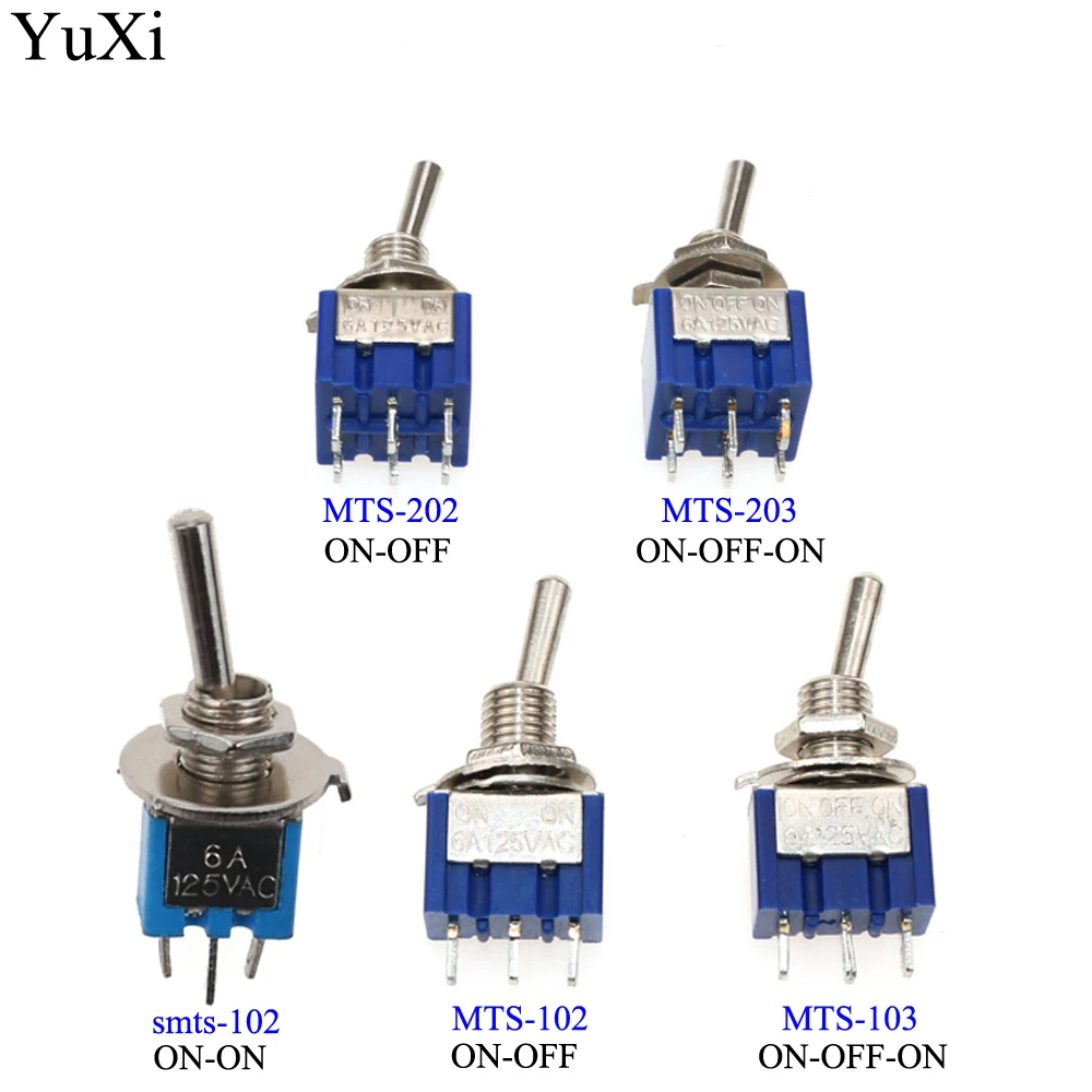 YuXi 5 шт. миниатюрный тумблер однополюсный двойной переключатель ВКЛ./вкл. 120VAC 6A 1/4 дюйма монтажный MTS-102 103 202 203