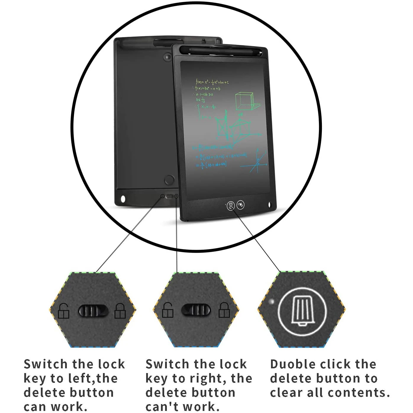 Частичное удаление: Одно нажатие на кнопку Delete для мгновенного удаления всего экрана. Не нужно использовать ластик или ткань. Кроме того, есть кнопка частичной очистки для удобной частичной коррекции.