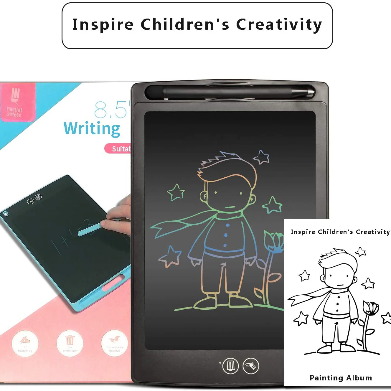 Хорошо сделанная доска для рисования с 8,5 дюймовым сенсорным ЖК-дисплеем и одним щелчком легко привлечет внимание детей и повысит их интерес к обучению. Сделайте написание и рисунок очень забавным. Функция анти-стирания позволяет творческому рисунку хранить в течение более длительного времени. Независимо от того, собираетесь ли вы в путешествие на машине или посетить друзей или родственников, вы можете рассчитывать на нашу светящуюся подкладку, чтобы ваши дети были заняты и развлекались все время! Более того, доска для рисования может стать идеальным подарком для детей разных возрастов практически на каждый случай, включая день рождения, Рождество, Новый год и многое другое!