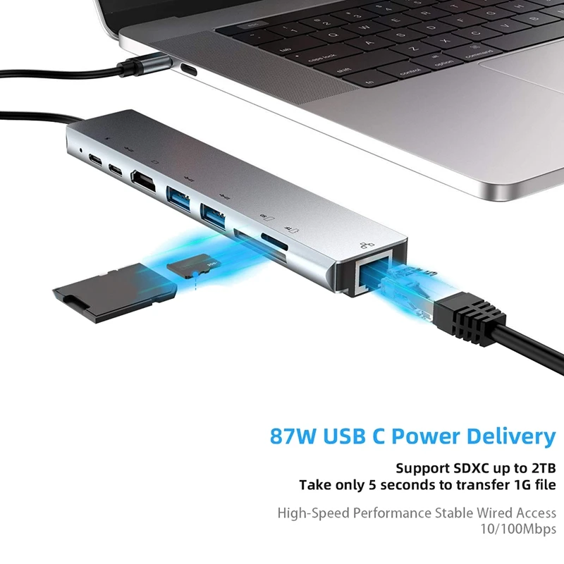 Отзывы о 8 в 1 USB 3 0 Высокоскоростные порты Type-C концентратор Usb-C до 4K 30HZ HD ноутбук Rj45 Gigabit Ethernet