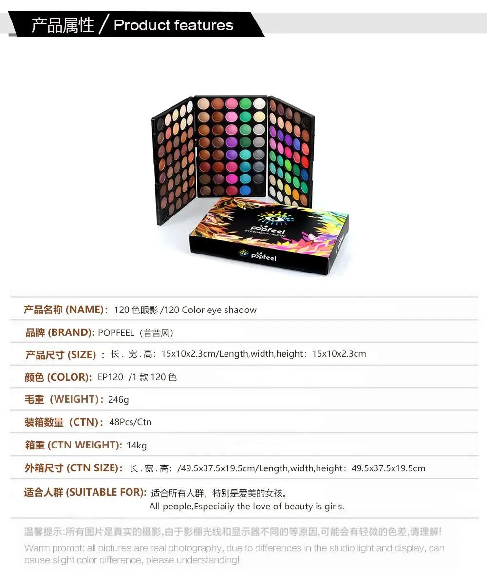 Отзывы о POPFEEL 120 оттенков блестящие тени для век Палитра прессованная Косметика