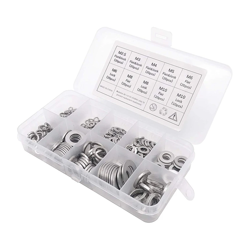 Отзывы о 260-шт (7-Размер) Стальная Плоская Шайба и шайба с замком набор-размер в комплекте: