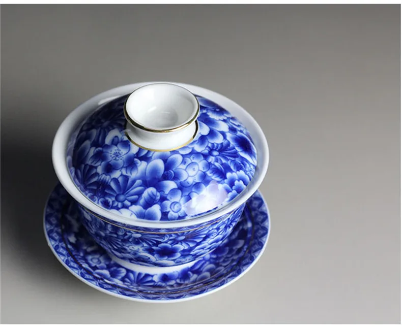 Отзывы о Tea Bowl Chinese Set Jingdezhen Blue and White Porcelain Gaiwan Ceramic Cup Saucer Gold Painted Tureen | Дом и сад