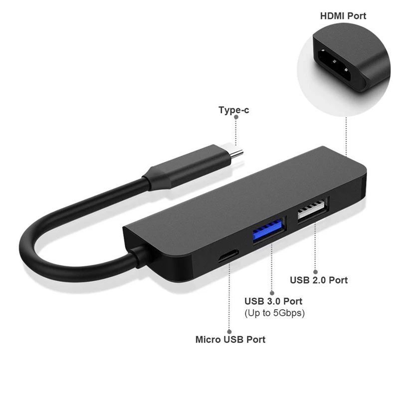 Концентратор Type-C-это один интерфейс, который расширяется в ряд различных интерфейсов, предоставляя решения для продуктов, которые требуют нескольких устройств и меньшего количества интерфейсов во время нашей повседневной работы и учебы. Этот концентратор предоставляет нам интерфейс 4K HDMI, интерфейс USB 3,0, интерфейс USB 2,0 и интерфейс Micro-usb питания 5 В. Интерфейс HDMI, подключенный к проектору, дисплею и другим устройствам, обладает сверхчетким большим проекционным эффектом sn 4K. Интерфейс USB3.0 может быстро считывать данные и поддерживает такие устройства, как мышь и клавиатура, чтобы помочь вам улучшить работу и эффективность обучения. Разъем питания Micro-usb используется для обеспечения питания. При использовании высокомощного устройства или нескольких устройств, требующих питания, он может обеспечить достаточную мощность, чтобы обеспечить плавную работу.