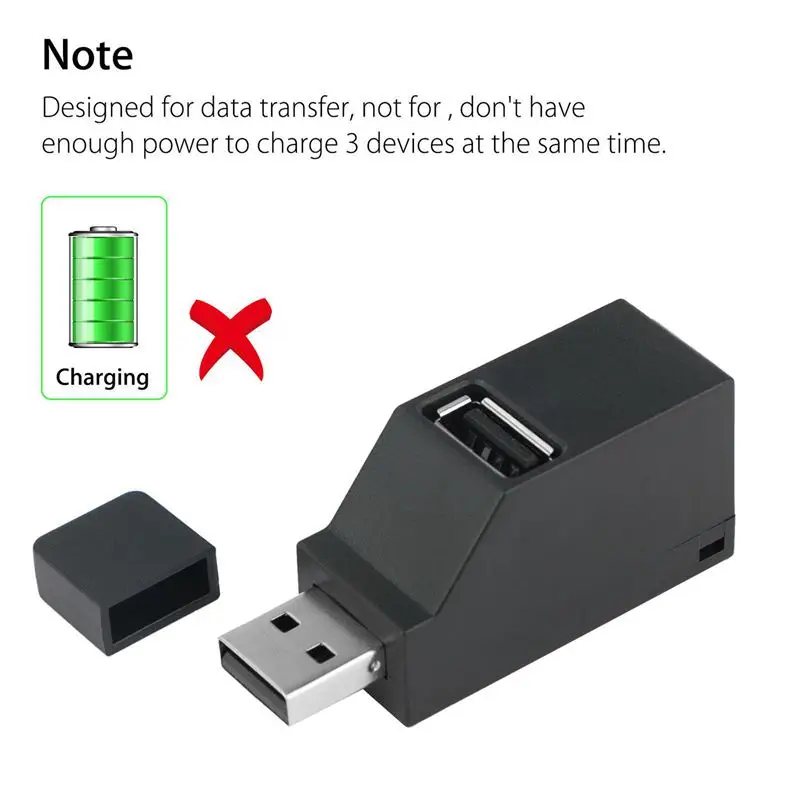 Предназначен для передачи данных, не для зарядки, не хватает мощности для одновременной зарядки 3 устройств.
