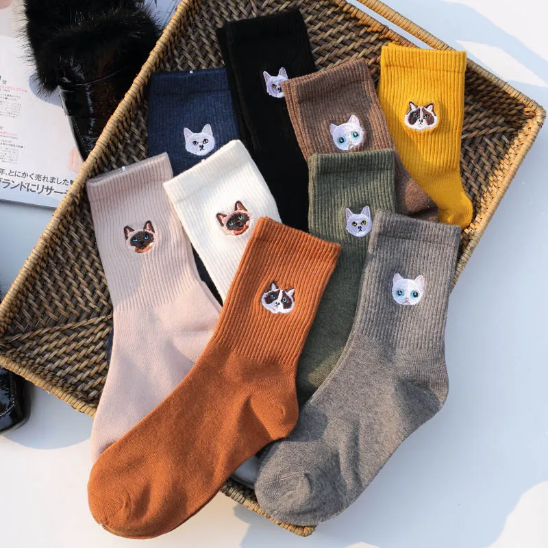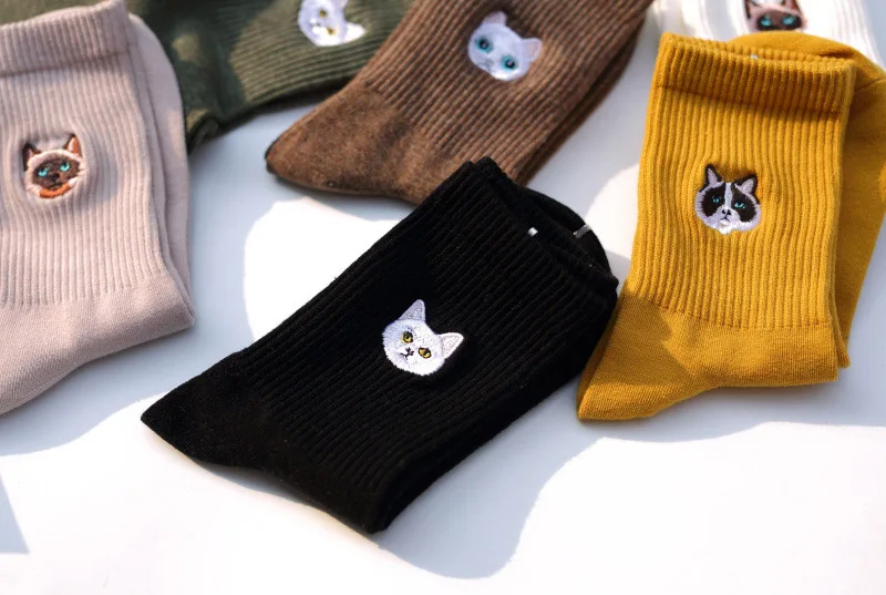 Отзывы о Женские нескользящие носки Harajuku дышащие с вышивкой в виде кота - купить по