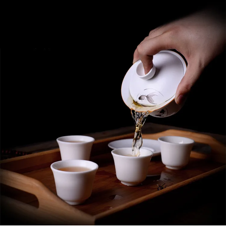 Отзывы о Матовая белая керамическая чашка для чая китайская чайная Sancai Gaiwan 180 мл кофейная