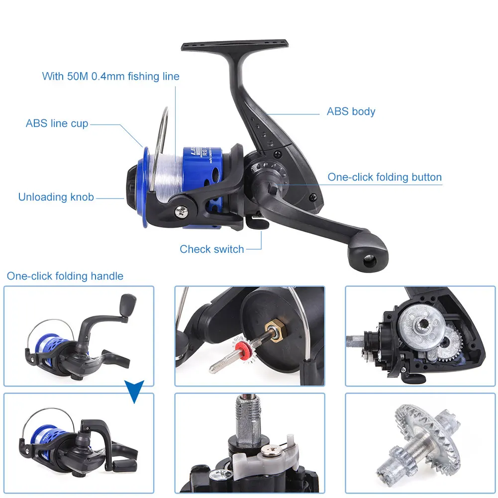 * 2. Полный комплект для рыбалки включает 1 телескопическую удочку, 1 рыболовную катушку, поплавковые бусины, поворотную защелку, грузило и многое другое.