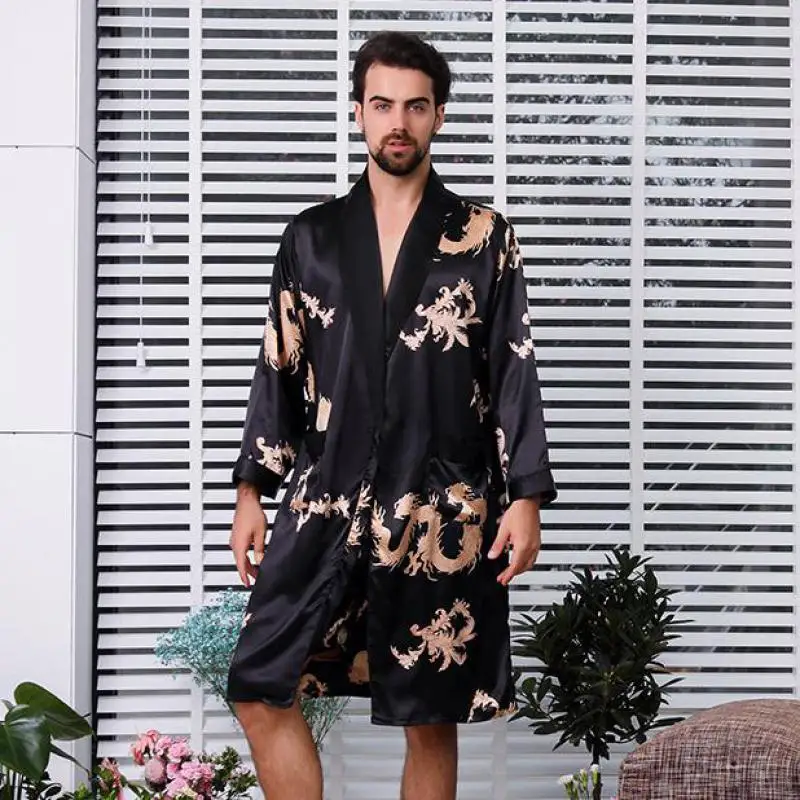 Отзывы о Комплект для сна Мужской Атласный из 2 предметов пижама с принтом дракона