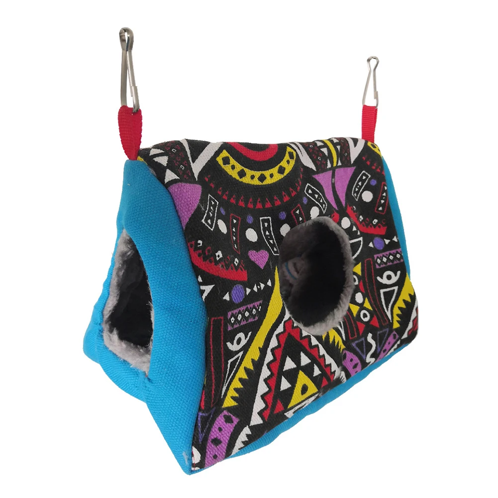 Изготовлен из холста и мягкого плюша, обеспечит теплое и удобное место отдыха вашему милому попугаю или птице.