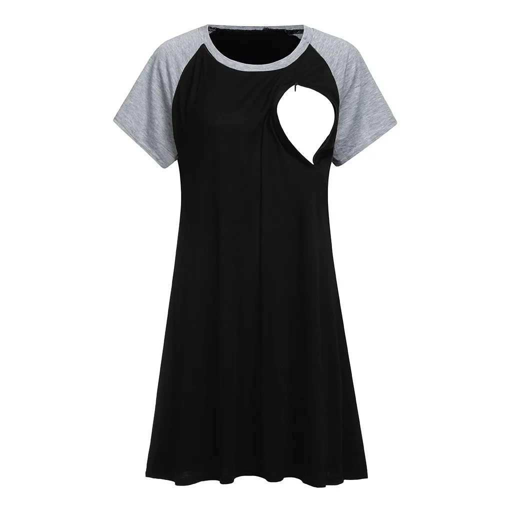 Maternity Short Sleeve Nursing Baby Breastfeeding Nightdress Pregnancy Dress