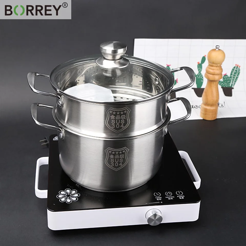 BORREY кастрюля для супа с двойными ушами из нержавеющей стали композитный нижний Пароварка утолщенная металлическая Пароварка универсальные кастрюли для приготовления пищи для индукционной плиты газовая плита паровой горшок
