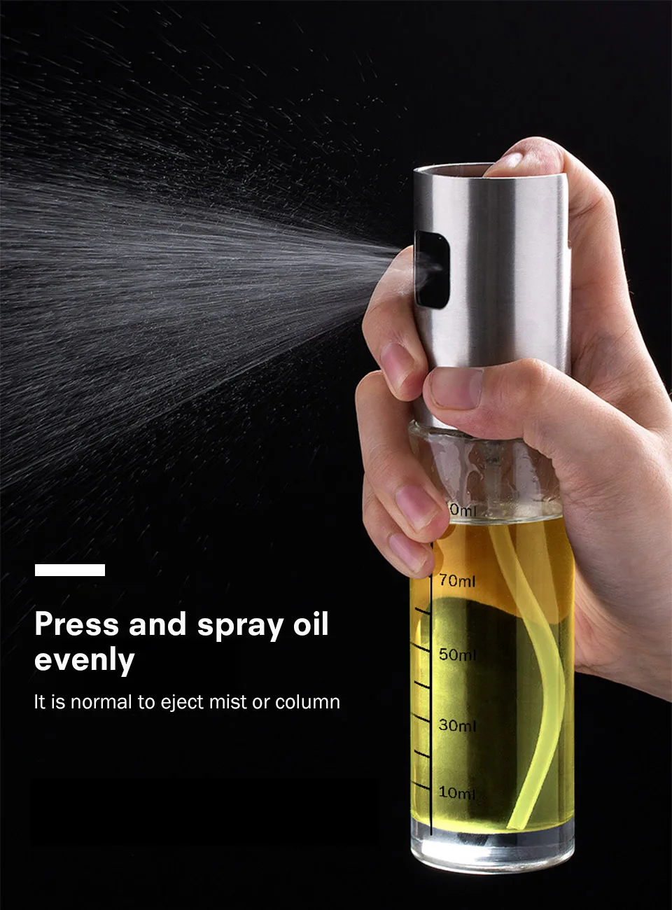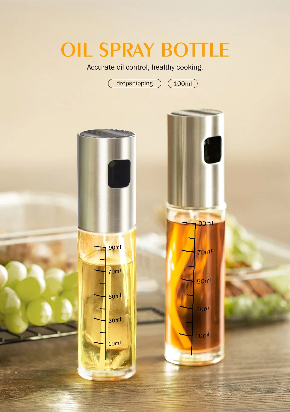 Материал: нержавеющая сталь + распылительная бутылка для масла, готовое стекло. Размеры (приблизительно) : 7 дюймов Высота, 1,6 дюйма Диаметр Емкость: 100 мл Посылка включает в себя: 2 масляных опрыскивателя, 1 чистящая щетка, 1 Воронка