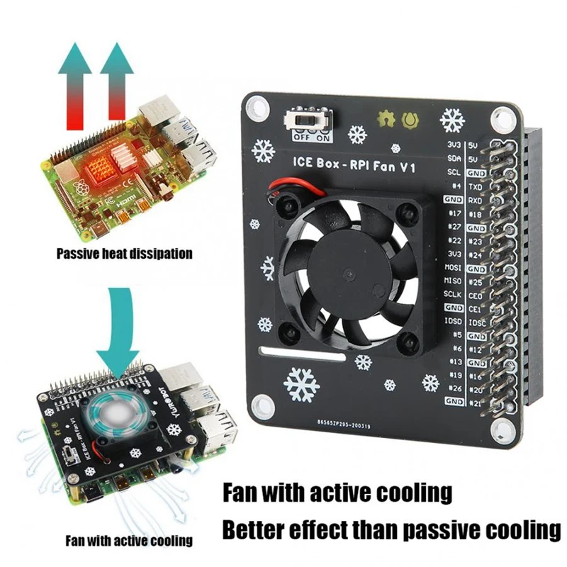 3. Охлаждающий вентилятор подходит для Raspberry Pi 4B, совместим с расширительной доской 3B + GPIO.