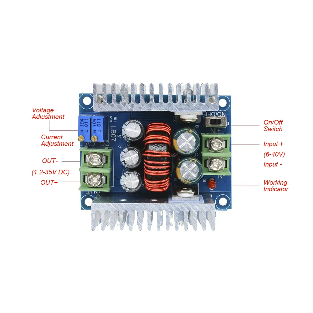 20A 300 Вт DC понижающий преобразователь. Вход Напряжение: 6V постоянного тока до 40V DC(10V постоянного тока до 40V предлагается), Выход Напряжение: 1,2 до 36В постоянного тока, Выход ток: 20A (макс.), 15A