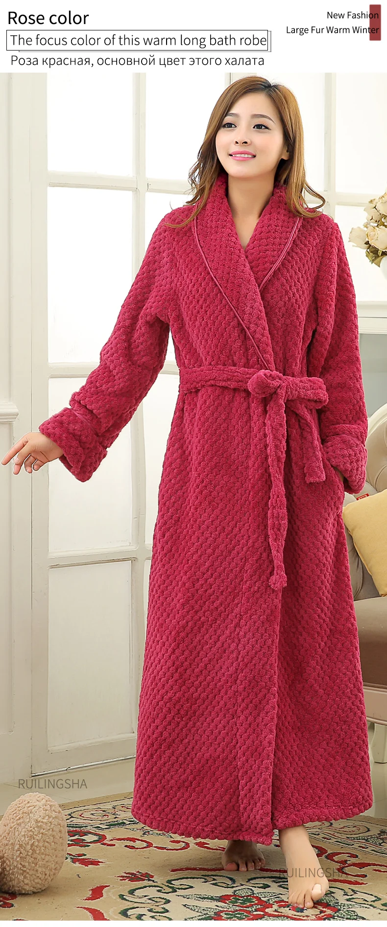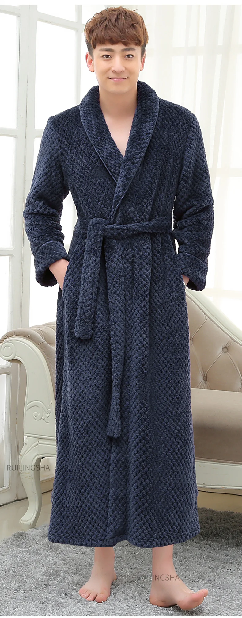 Размер: XL, ширина плеч: 52 см, обхват груди: 125 см, длина рукава: 62 см, длина халата: 140 см,