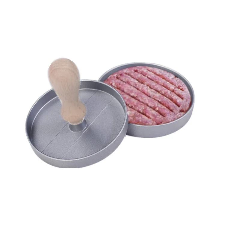 Кухонный гаджет для бургеров тисненый пресс-форма для мясных булочек с деревянной ручкой Ручной пресс для бургеров