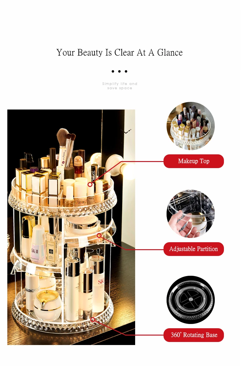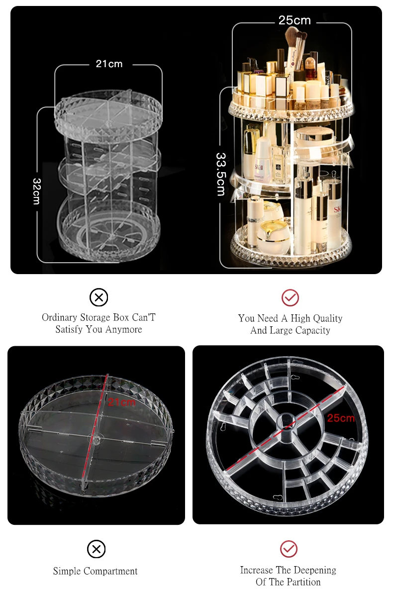 Отзывы о New Large Cosmetic Drawer Storage Box Dressing Table Makeup Organizer Lipstick Rack Rotating Acrylic Transparent Plastic Shelf | Дом и сад