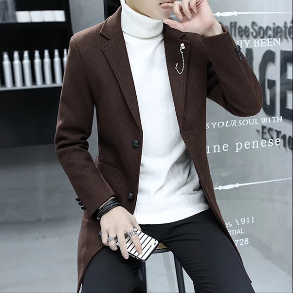 Отзывы о Мужской твидовый пиджак зеленый утепленный длинный в Корейском стиле для осени и