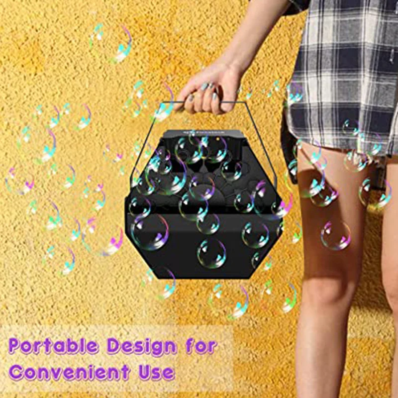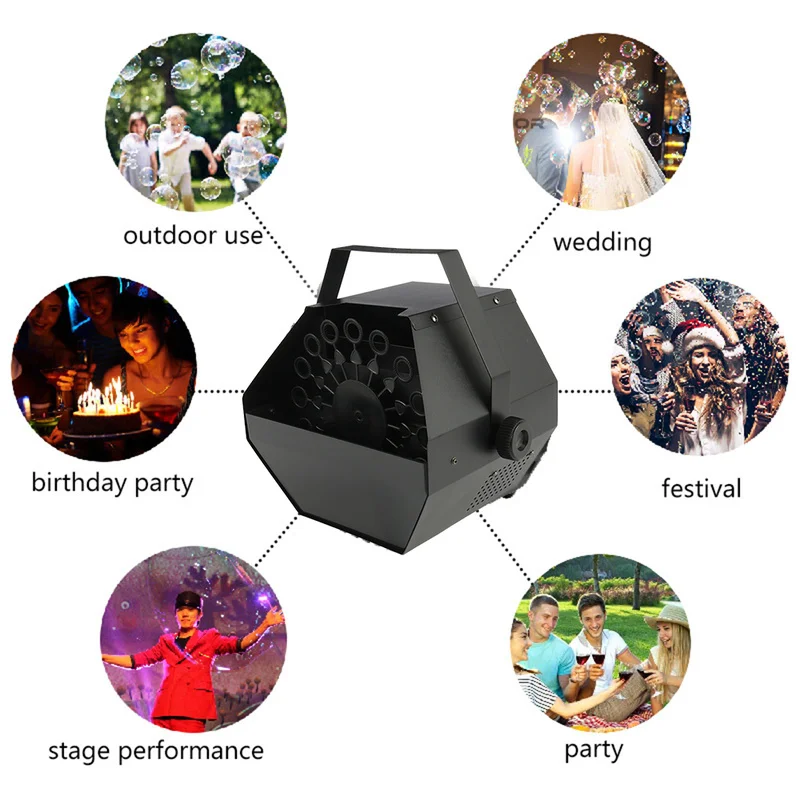 3. Использование в помещении и на открытом воздухе: сколько красивых мыльных пузырей летит! Создавайте интересные и романтические эффекты для дней рождения, сцен, свадеб, дискотек и других мероприятий. (Пузырьковый раствор не входит в комплект)