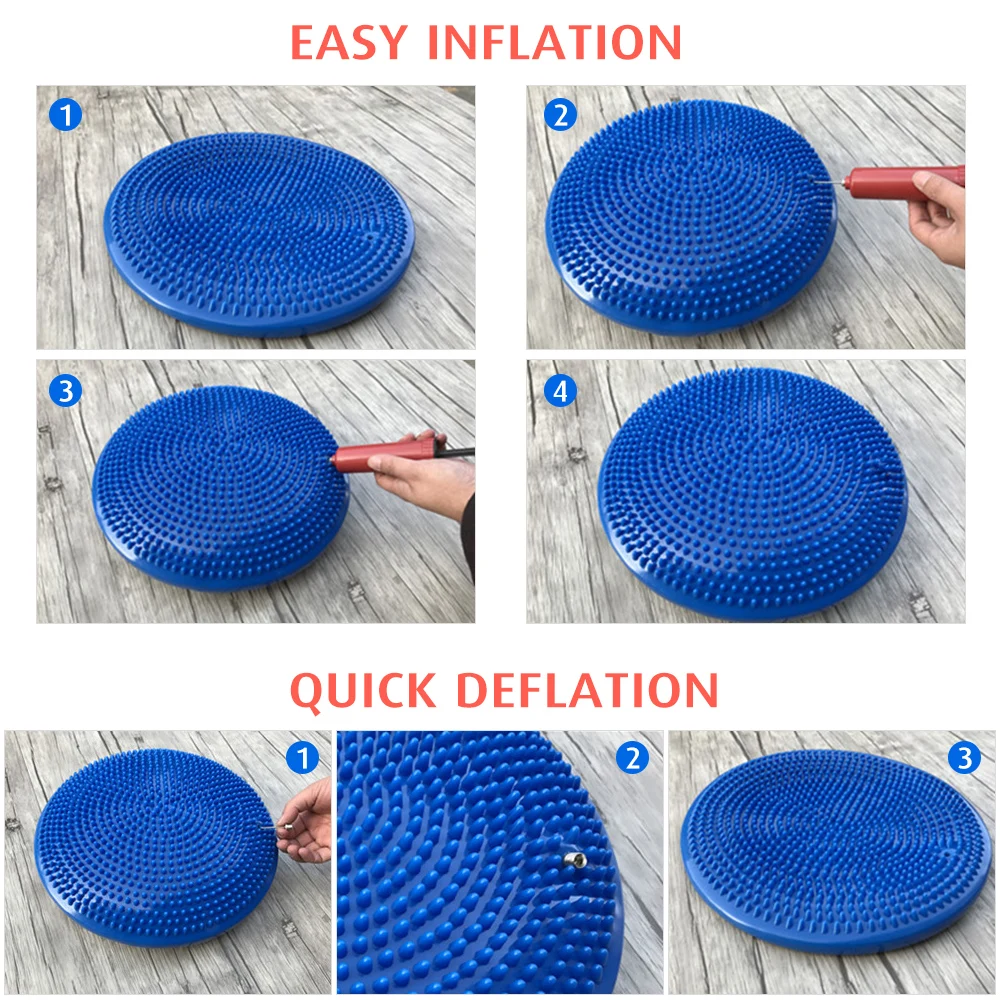 Надувной Балансирующий диск изготовлен из высококачественного прочного, противоскользящего и предотвращающего трещины ПВХ. Подходит как взрослым, так и детям для улучшения баланса, основной стабильности, координации и гибкости