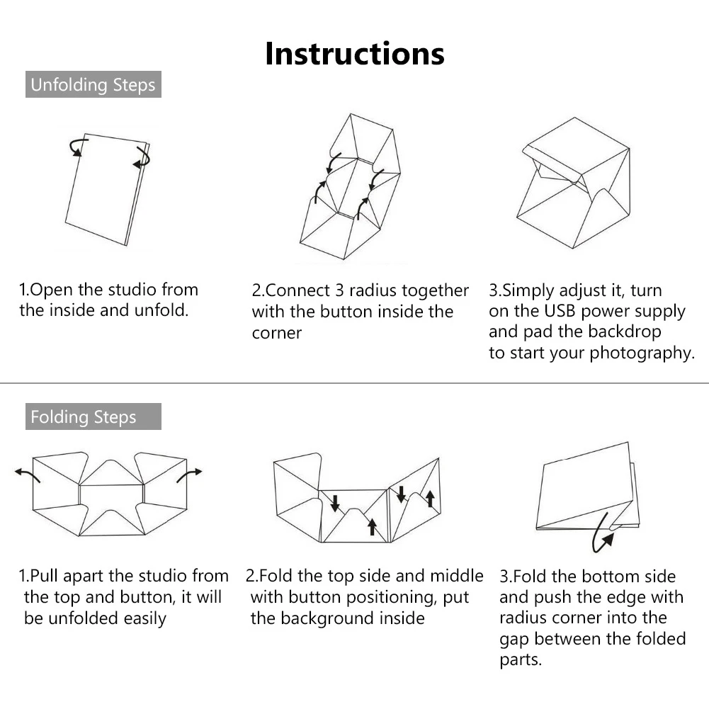 Используя этот ящик для фотостудии, вы можете делать фотографии сфокусированных и реальных объектов. Подходит для людей, владеющих интернет-магазином, и они могут сфотографировать товары сами.