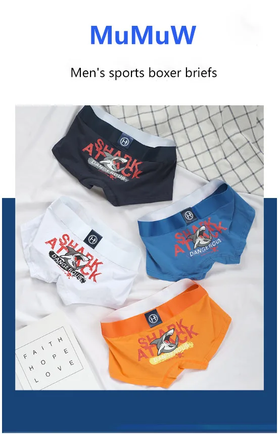 Отзывы о Трусы-боксеры мужские хлопковые нижнее белье с принтом акулы дышащие со средней