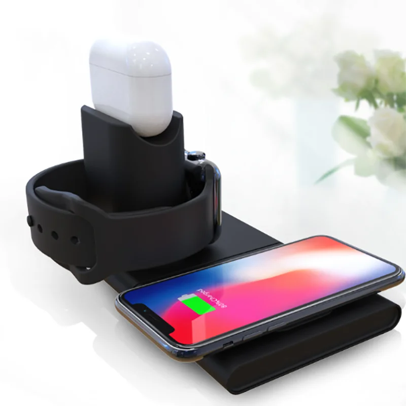 3 в 1 10 Вт Qi Беспроводное зарядное устройство для док-станции AirPods Быстрая зарядка для Apple Watch 1 2 3 4 для iPhone XR XS Max для Samsung S9
