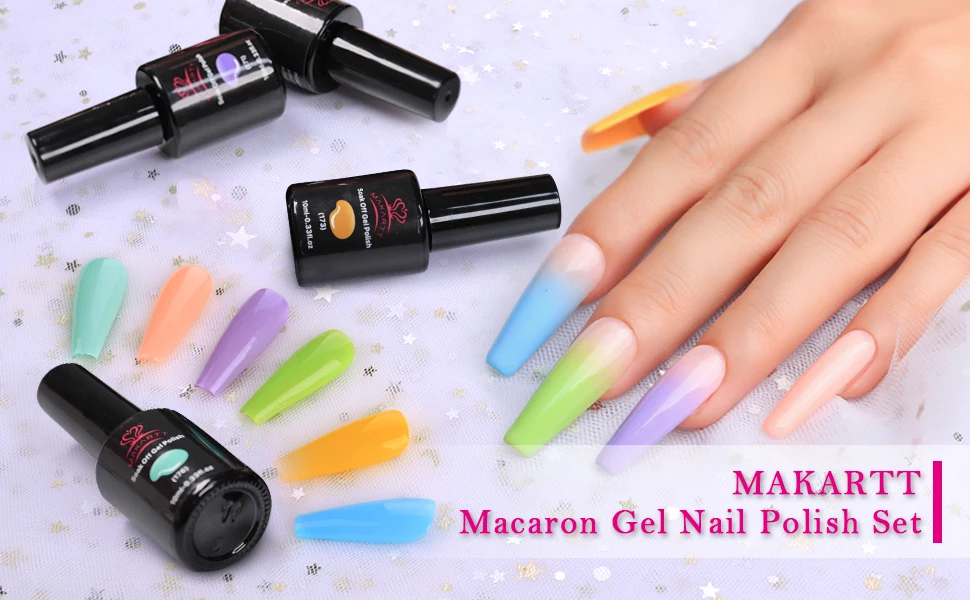 ❤Потрясающий Комплект гель-лаков для ногтей: Набор лаков для ногтей Makartt P-17 сочетается с Mauve, розовым фламинго, желтым, зеленым яблоком, небесно-голубым, светильник Cyan, макияж Цвета Макарон лак для ногтей набор, который удивит вас. Очаровательный светодиодный отмачиваемый набор гель-лаков для ногтей, который подарит вам особый и яркий дизайн ногтей весной и летом в пастельных тонах.